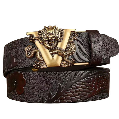 ड्रैगन नया फैशन चमड़े का बेल्ट व्यक्तित्व v स्वचालित बकल नक्काशीदार कौहिट्स पैंट